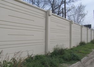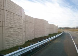 Terre Armee and subsidiaries design and furnish precast concrete post-and-panel noise walls and privacy barriers using ground-mounted posts.