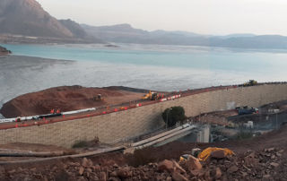 When watertightness is necessary, our GeoMega® system with GeoStrap® or EcostrapTM synthetic soil reinforcements can be easily combined with a waterproofing membrane, making it ideal for complex structures, such as locks and water saving basins.